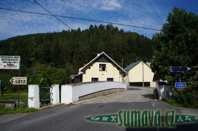 Železobetonový most z roku 1928 přes zlatonosnou řeku Losenici v městečku Rejštejn.