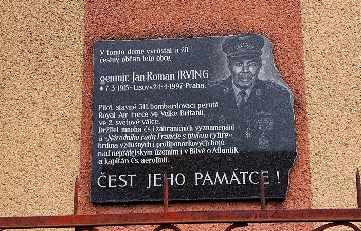 Pamětní deska Jana Romana Irvinga na domě Úherce, Hlavní 61 s nápisem: „V tomto domě vyrůstal a žil čestný občan této obce, genmjr. Jan Roman IRVING +7.3.1915 - Lisov +24.4.1997 - Praha. Pilot slavné 311. bombardovací perutě Royal Air Force ve Velké Britanii, ve 2. světové válce. Držitel mnoha čs. i zahraničních vyznamenání a >>Národního řádu Francie s titulem rytíře<< hrdina vzdušných i protiponorkových bojů nad nepřátelským územím i v Bitvě o Altantik a kapitán Čs. aerolinií ČEST JEHO PAMÁTCE !“ Jan Roman Irving rozený Ircing (7.března 1915, Lisov - 24.dubna 1997, Praha) byl československý letec, pilot 311. bombardovací perutě RAF. V této peruti nalétal 1024 hodin, celkově nalétal 1125 hodin ve 115 operačních letech. Když se to sečte, byl by ve vzduchu nepřetržitě téměř 47 dní, tedy více než půldruhého měsíce… Narodil se v Lisově u Stoda v okrese Stříbro na jižním Plzeňsku a od tří let vyrůstal v Úhercích. Vychodil obecnou školu, měšťanskou školu a vyučil se strojním zámečníkem ve Škodě Plzeň. Od roku 1931 studoval na střední průmyslové škole v Plzni. Byl jedním z těch, kteří vyslyšeli výzvu „1000 pilotů republice“. V roce 1931 se stal členem Západočeského aeroklubu v Plzni a v letech 1934 až 1935 absolvoval letecké učiliště - školu pro odborný dorost letectva při Vojenském leteckém učilišti (VLU) v Prostějově, kde získal kvalifikaci pilota dvoumístných letounů. Po výcviku byl zařazen k 1. pozorovací letce Leteckého pluku 1 T. G. Masaryka na letiště Praha-Kbely. Do vypuknutí války dosáhl v československé armádě hodnosti rotného délesloužícího. V květnu 1939 opustil nacisty okupované Československo a přihlásil se na konzulátu v polském Krakově. Zapsal se do Cizinecké legie a byl transportován do Francie. Po povýšení do hodnosti Caporal-Chef byl 19. května 1940 jako jeden z mála československých bombardovacích letců ve Francii zařazen k bojové jednotce, Groupe de Bombardment GB I/21. V jejím rámci operoval na dvoumotorových bombardovacích strojích Marcel Bloch MB-210 a na moderních Amiot 351. Až do zhroucení Francie stačil vykonat celkem 11 nočních bombardovacích náletů proti soustřeďovacím prostorům nepřátelských jednotek. Francouzská žádost o sdělení podmínek příměří jej a několik dalších čs. bombardovacích letců zastihla na letišti Agen u Bordeaux, kde byl vyznamenán francouzským válečným křížem (Croix de Guerre). Právě odtud dva bombardovací letouny s čs. osádkami 18. června 1940 s požehnáním francouzských velitelů, ale bez řádné předletové přípravy a za nepříznivého počasí odletěly směrem k Anglii. Irving pilotoval stroj Amiot 351. Při této příležitosti se poprvé významněji zapsal do historie československého letectva. Se svým letounem totiž nepřistál v Anglii, ale pro špatné povětrnostní podmínky a nedostatek benzínu musel jeho stroj přistát v Jugoslávii. Dlouhou dobu byl se svými druhy považován za nezvěstného a in memoriam mu byla dokonce udělena Československá medaile Za chrabrost in memoriam. V Bělehradě se 1. září 1940 opět přihlásil do čs. zahraniční armády a přes Řecko a Turecko se dostal k čs. pozemní jednotce v Haifě v Palestině (čs. pěší prapor 11 – Východní), kde byli prezentováni 12. prosince 1940. Odtud byl 24. února 1941 přemístěn k čs. letectvu a po plavbě z Port Saidu přes Aden, Natal, Kapské Město, ostrov Sv. Heleny, Freetown a Gibraltar připlul 15. května 1941 do Anglie. O čtyři dny později byl přijat do řad RAF VR – zpočátku jako vojín (Aircraftman No 2 Class) a zakrátko jako četař (Sergeant). Zde se přihlásil do Britského královského letectva, absolvoval výcvik a v listopadu byl již jako rotmistr převelen k 311. československé bombardovací peruti RAF. Bojoval v bitvě o Británii a zúčastnil se nočních bombardovacích letů nad Německem. Od léta 1943 se aktivně podílel v bitvě o Atlantik. V červnu 1944 měl nalétáno 930 hodin, což bylo nejvíce ze všech pilotů perutě. Prvenství získal i co se týče počtu napadení zjištěných nepřátelských ponorek, zaútočil na ně celkem osmkrát. Irvingovým utkáním s ponorkami došlo 5. října 1942, 27. září 1943 (toho dne útočil na dvě ponorky), 20. října 1943, 1. ledna 1944 a 24. června 1944 (tři ponorky). Dne 28. října 1943 byl povýšen do hodnosti podporučíka a poté na poručíka. V srpnu roku 1944 byl převelen na Bahamské ostrovy, kde sloužil jako instruktor československých vojáků v boji na moři a rovněž sám provedl několik operačních letů proti německým ponorkám. Do Evropy se navrátil na palubě lodi Queen Elizabeth, 25. srpna 1945 se vrátil do Československa. V roce 1946 byl demobilizován a začal létat pro Československé státní aerolinie. Zároveň vedl výuku teorie a praktický výcvik pilotů. Z ČSA byl z politických důvodů v roce 1951 propuštěn. Poté musel vzít zavděk nekvalifikovanou, špatně placenou prací. V roce 1956 byl navíc dokonce zatčen StB a uvězněn ve vazbě v Ruzyni, odkud jej však později pro nedostatek důkazů propustili. V roce 1952, se poprvé oženil a narodily se mu dvě děti, jako první dcera Adriana (* 1953). V roce 1956 byl zatčen a uvězněn Státní bezpečností, odkud byl později pro nedostatek důkazů propuštěn. Po návratu z vězení se narodil syn Jan (* 1958). První vlna amnestií v roce 1960 se mu vyhnula. V roce 1964 byl částečně rehabilitován, v roce 1968 mu byl udělen čestný titul Zasloužilý vojenský letec a mohl se vrátit k Československým aeroliniím, kde létal až do odchodu do důchodu v roce 1977. Plně rehabilitován byl po roce 1989. Do roku 1996 působil v předsednictvu znovuobnoveného Svazu letců České republiky. V r