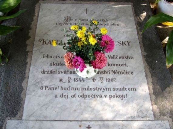 Hrobka šlechtického rodu Dlouhoweský na hřitově obce Čestice s nápisy: Svobodná paní Alžběta Chanovská z Dlouhé Vsi na Němčicích a na Kraselově rozená svobodná paní z Puteani, jenž zemřela v Němčicích v zámku dne 15. května léta Páně 1861 večer po 7.hodině v 48. roku věku svého. Karel Dlouhoweský major v.v. 2.9.1876 - 13.6.1956, Hedvika Dlouhoweská roz. Konopníková 19.11.1880 - 17.1.1969, Gabriela Dlouhoweská 5.3.1905 - 4.6.1982, Jan Dlouhoweský 2.8.1909 - 20.6.1996, Karel Dlouhoweský 13.9.1844 - 27.2.1907 a jeho choť Gabriela Dlouhoweská z Langendorfu zemřela 19.dubna 1909.“
