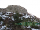 Málo dochovaná zřícenina na strmém kopci 500 m od hradu Kašperk, vyhlídková tabule.